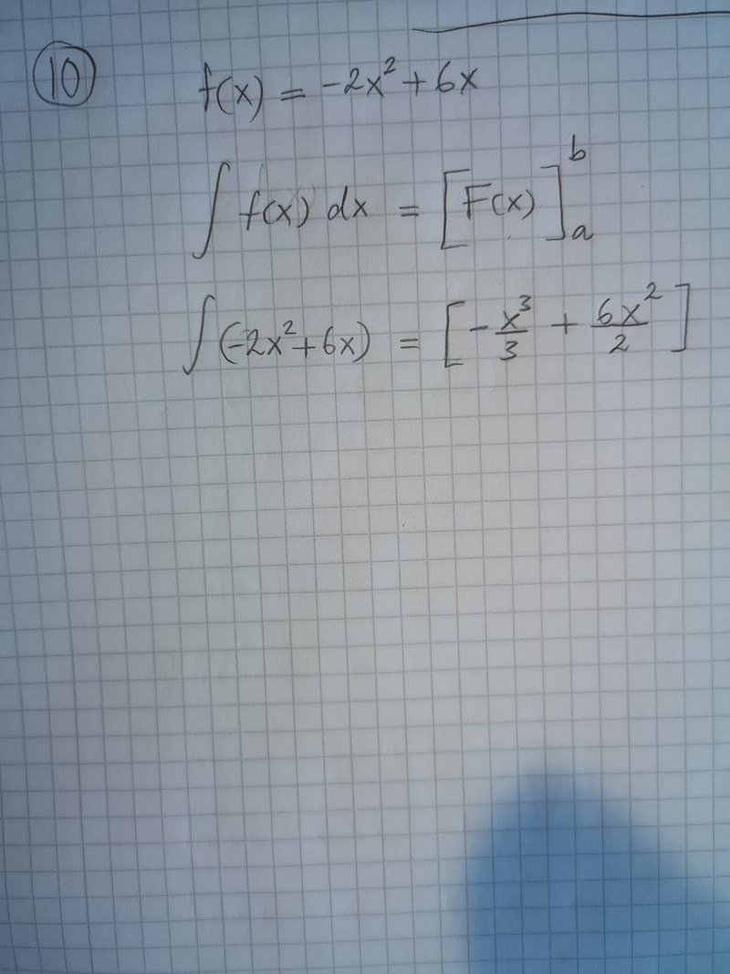 joculator skrev:f(x)=-2x2+6x för att få fram F(x) måste du integrera f(x). Har du läst om det?