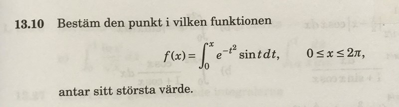 Hur brukar man hitta extrempunkter? Tänk på att funktionen i integralen är derivatan till f(x).