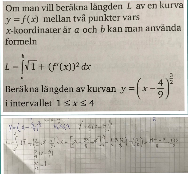 HT-Borås skrev :Det är feltryck i problemtexten; kurvlängden är