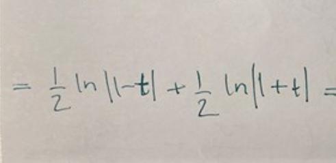 borde vara ett minustecken framför den första termen eftersom derivatan av ln(1-t) = -1/(1-t)