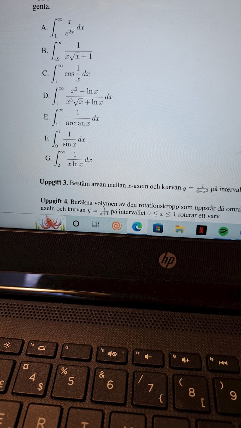 Vad kan du säga om detta? Vad gäller för var och en av dessa integraler? Vilka kan vara bekymmer med avseende på konvergens och divergens? Vad drar du för slutsats?