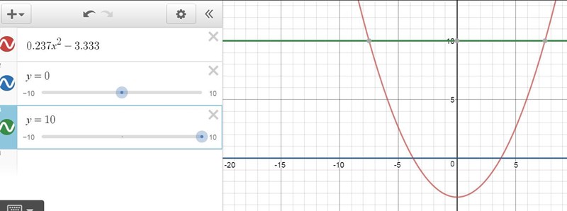 Det som inte stämmer är ju att när y=10 så korsar kurvan på -5,37 och 5,37 i x-led.