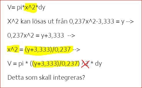 Davidos skrev :Så om man går tillväga som så att v=pi*r^2*dy