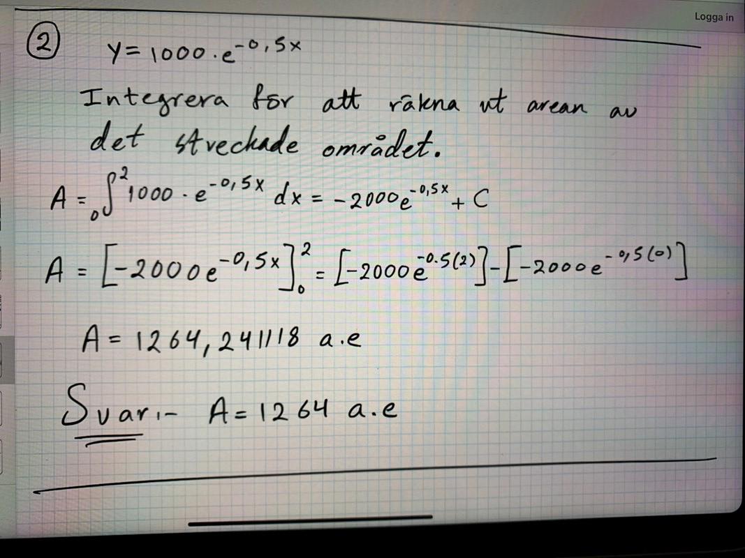När vi nu gjort det, kan vi korrekturläsa lösningen. Dina beräkningar ser bra ut! Ett litet tips kan vara att bryta ut faktorn 1000 från integralen, så blir det lite mindre tal i den primitiva funktionen, men det är bara en smaksak. Väl räknat!
