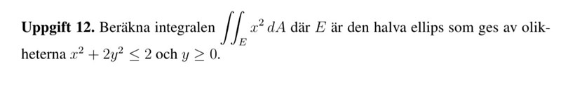 Området är alltså den övre delen av ellipsen. Ett lämpligt koordinatbyte kan vara