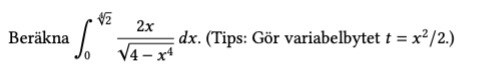 Börja med att följa tipset och gör substitutionen. Vad får du då?