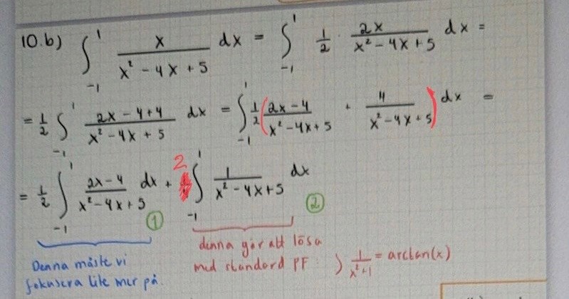 2. Bryt ut lämplig faktor ur integranden i integral 2 för att få en etta i täljaren.