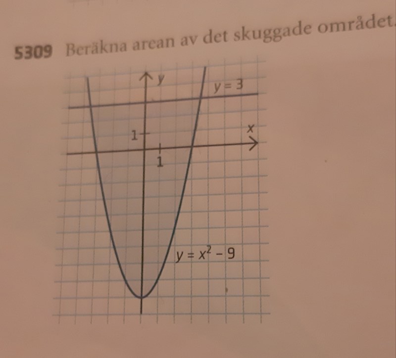 Jag antog att det var skärningspunkterna mellan graferna efteraom det står att jag ska räkna ut arean mellan grafen.