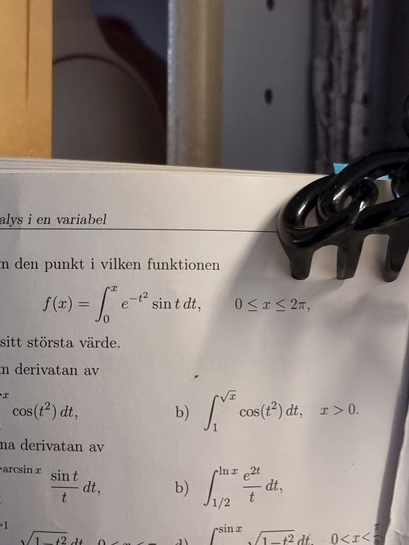 Smutsmunnen skrev:Det är en integral och del av funktionen. Funktionen är en funktion av x, x är den övre gränsen för en integral vars integrand är en funktion av t.