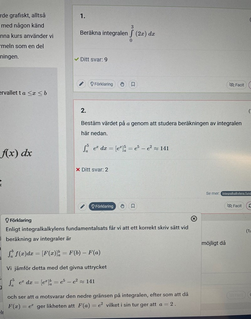 MAn ska bestämma värdet på a genom att studera beräkningen, dvs i övre bilden, Den undre har jag öppnat eftersom jag fick fel och den undre bilden avser en förklaring som jag inte fattar
