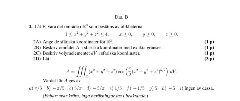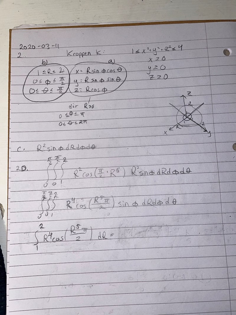 På deluppgift 2D börjar jag med att beräkna integralen med avseende på R, men jag vet inte vilken metod som är lämplig att använda. Jag försökte med partiell integration men även det var nästintill omöjligt…