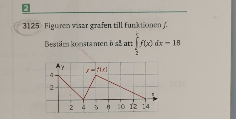 Man kan också lösa den genom att titta i grafen och se vilket x-värde b som ger en area på 12 a e mellan x=6 och x=b.