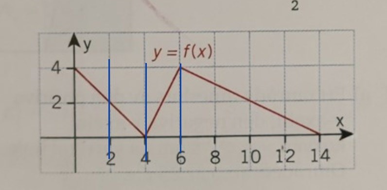 Eftersom hela funktionen inte kan uttryckas enkelt så kan du dela upp integralen i tre olika, en för x 2 till 4, en för 4 till 6, och en för 6 till 14. Från x=6 är funktionen en rät linje.