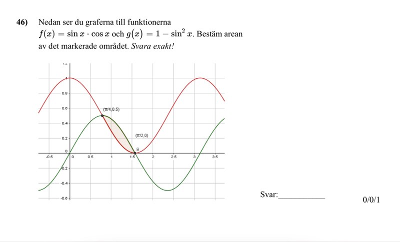 Vi har inte lärt oss hur man primitiviserar cos och sinus funktioner så jag har ingen aning hur jag ska göra. Jag kanske ska lösa den grafiskt istället?
