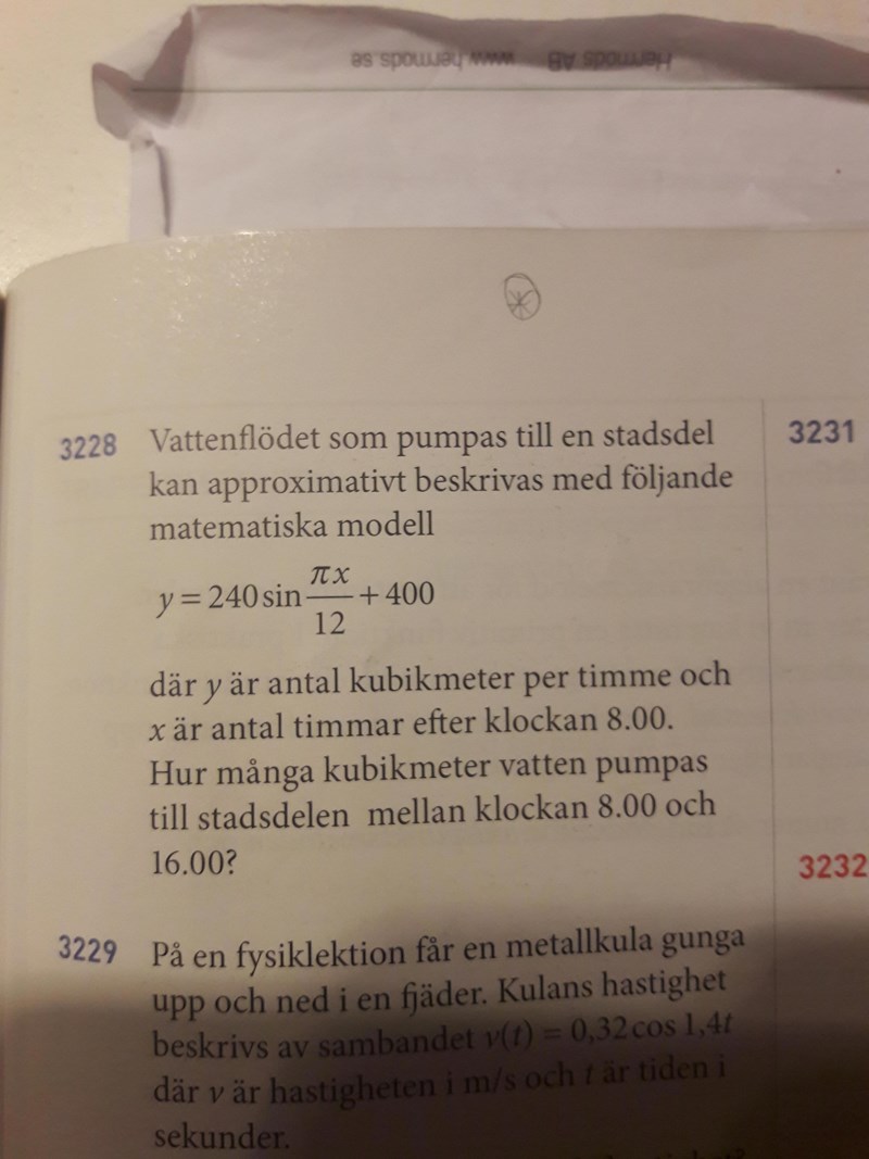08400+240sin(πt12)dt\int_{0}^{8}400+240 \sin (\frac{\pi t}{12}) \,dt kubikmeter vatten.