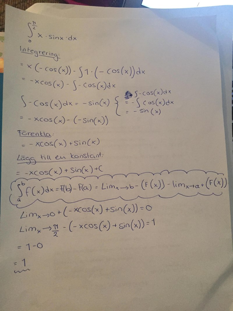 Här är hela min integrering, är allt rätt och har jag integrerat så som man skall göra när man får ett sådant tal?