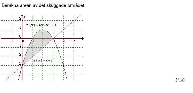 Jag har fastnat på den här uppgiften. Jag har provat ta övregräns - undregräns och har fått fel svar, jag provade även att räkna ut triangeln först, tog sedan ut bådas funktionernas integralvärde och plussade ihop allt men fick fel svar.