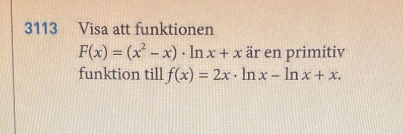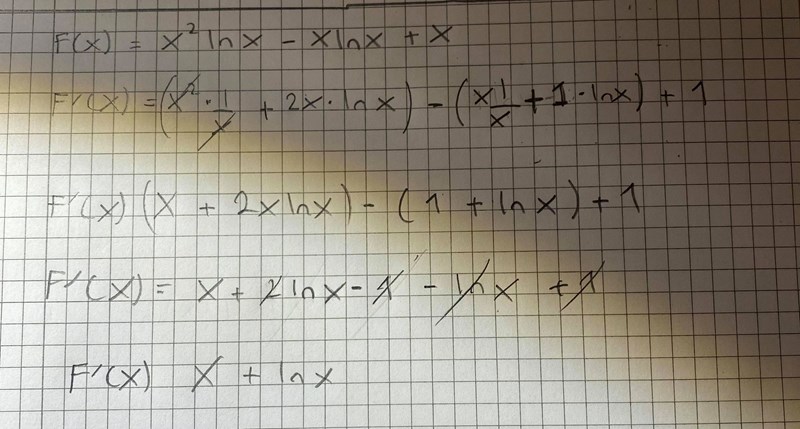 Tack, men blir fortfarande fel, får svaret x+ 2xlnx -lnx :/