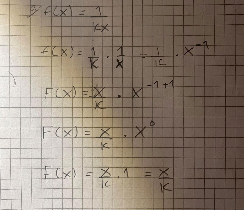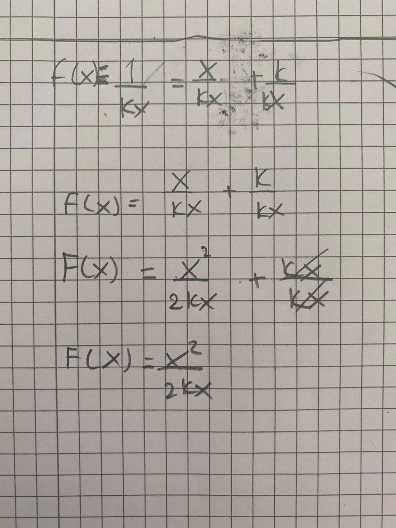 Därefter förstår jag inte varför 1/K inte blir x/k
