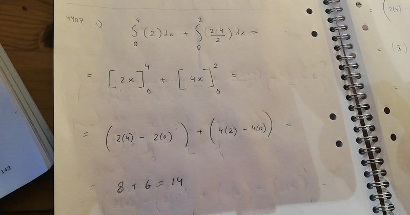 Löste uppgift c) så här, så då är detta fel? Eftersom man bara ska beräkna arean utan integraler?