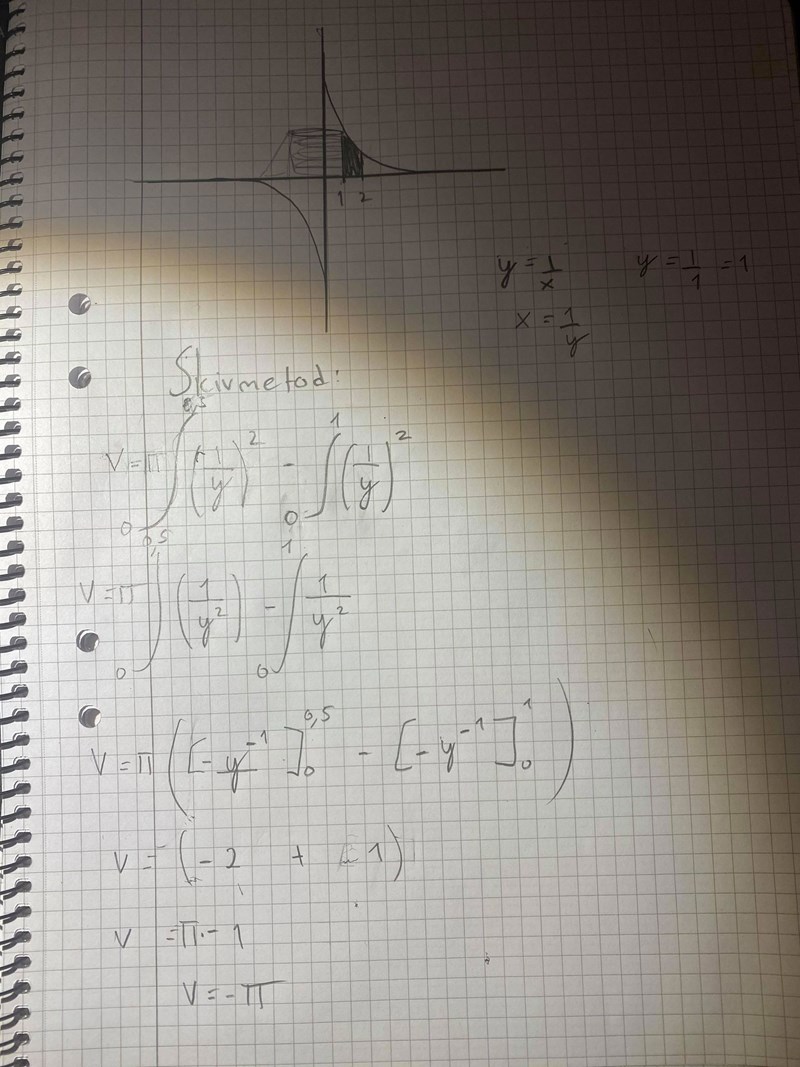 gränserna på y axeln är ju 0,5 och 1? och enligt skivmetoden borde man ju använda y axlarna