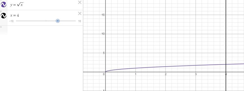 Ett område begränsas av kurvan y=x , x-axeln och linjen x=4. Linjen x = a delar området i två delar med lika stora areor.