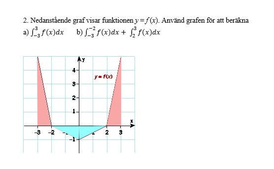 Om du summerar de färgade områdena (från -3 till +3) får du 2,5 - 2 + 2,5 = 3.