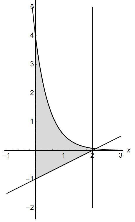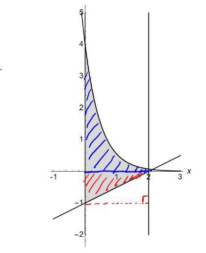 den andra räta linjen får man väl arean genom att få antiderivatan av funktionen