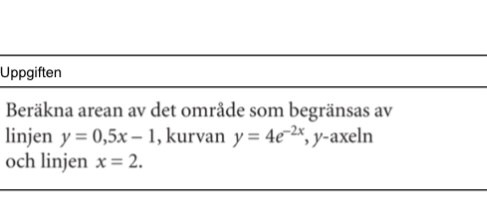 Börja med att rita upp området. Integrationsområdena är givna i problemet. Kom ihåg att det är AREAN som skall beräknas.