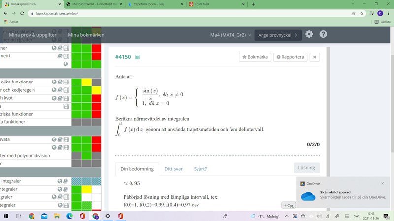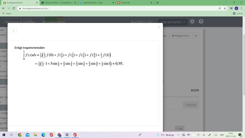 Smutstvätt skrev:De delar upp intervallet i fem mindre intervall, och i princip beräknas sedan ett medelvärde av funktionen på dessa små intervall. Därför divideras summan med fem. :)