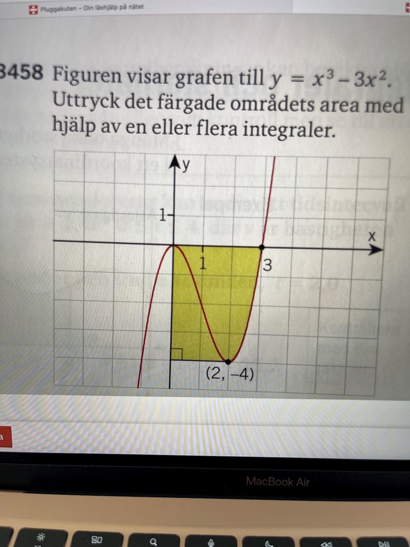 För att y = -4 är underfunktionen i intervallet 0 < x < 2, om man vill räkna ut den gula arean UNDER den röda kurvan.