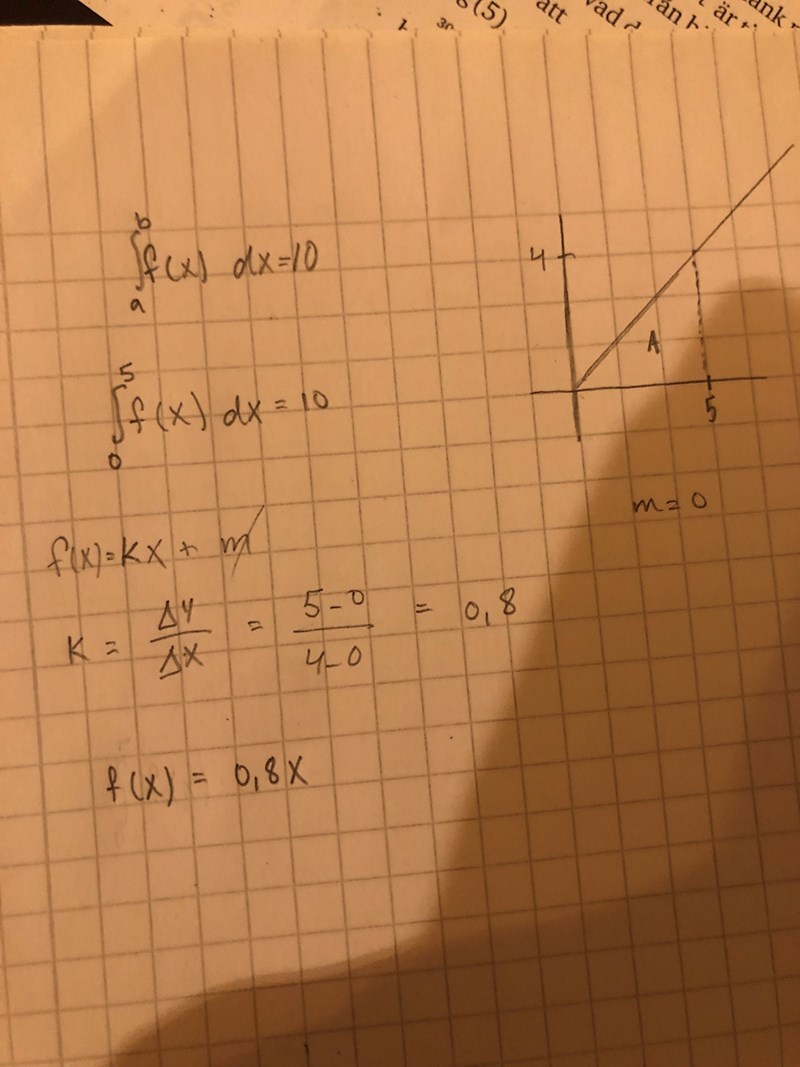 Hitta på en funktion f(x) och värden på talen a och b så att |f(x) dx = 10.