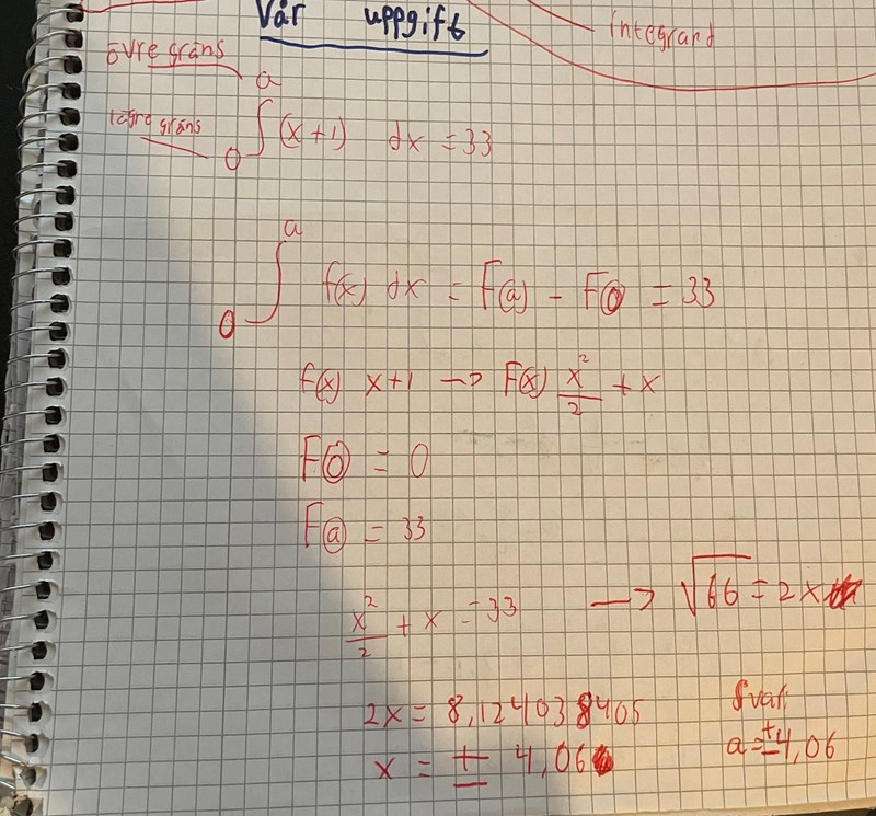 Har märkt att båda blir väl fel? Tar jag och lägger in våra värden på x så blir inget av dom 33