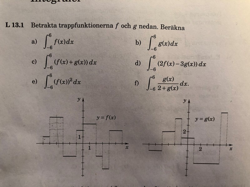- i intervallet x = -6 till -5 är f(x) = 1=> (f(x))2 = 1