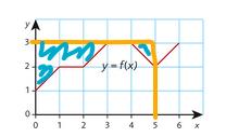 Jag förstår att jag ska räkna arean mellan x-värdena 5 och 0 men eftersom linjen inte är kontinuerlig vet jag inte hur jag ska göra.