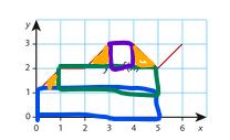 Man kan dela in arean i rektanglar 5x1 + 4*1 + 1*1 plus tre trianglar 1*0,5 (gult) = 5+4+1+1,5 = 11,5