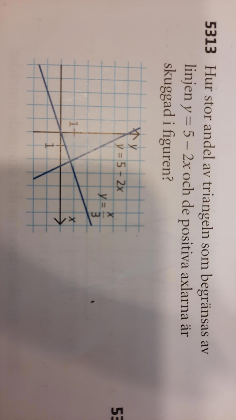 Jag tycker själv att frågan är otydlig men jag tror att de vill veta andelen av den större triangeln (den som avgränsas av x axeln) som är skuggad (d.v.s den som avgränsas av x/3) men jag kan ha uppfattat frågan fel också