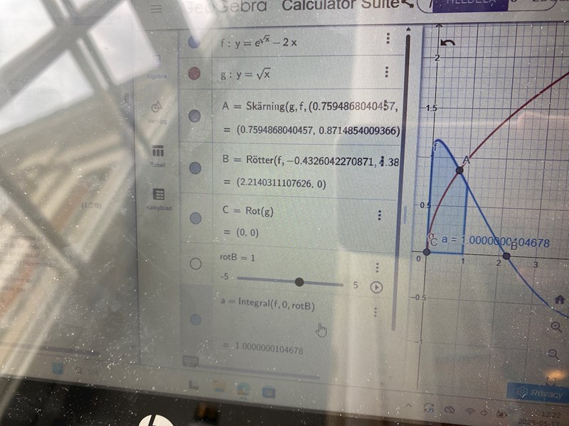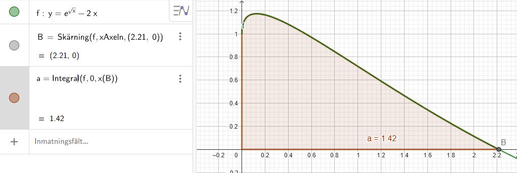 Hejj! Jag försökte göra en integral för grafen f med övre gräns B och undre 0 men varför får jag det här området?