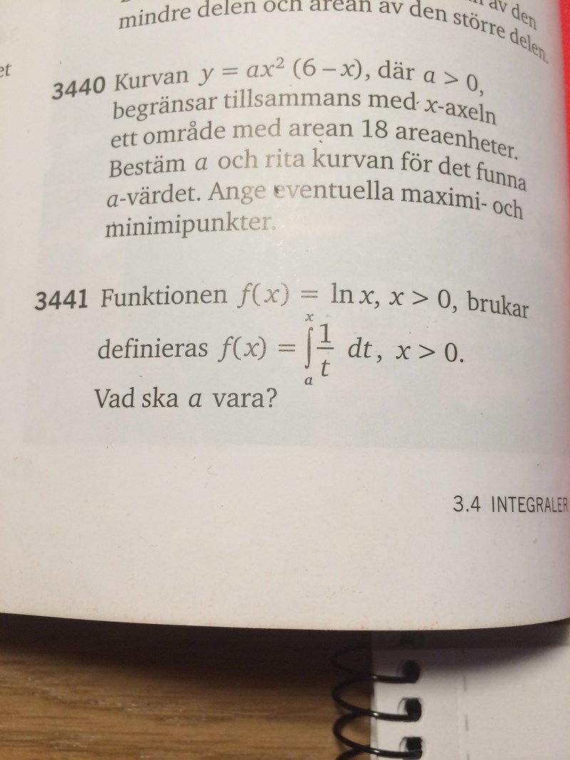 Uppgift 3441. Jag fattar ju inte uppgiften. Menar de att arean av (1/t) som varierar från a till x är ekvivalent med in x?