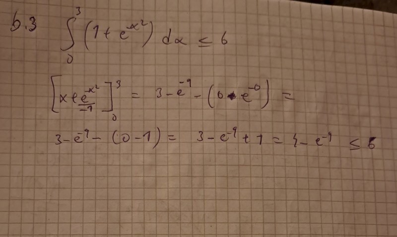 Jag är lite osäker på om jag ska integrera med gränserna angivna i uppgifterna 6.2-6.3 eftersom detta är en olikhet? Såhär gjorde jag på 6.3
