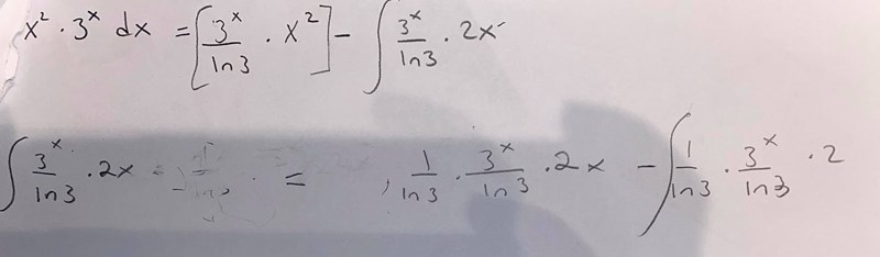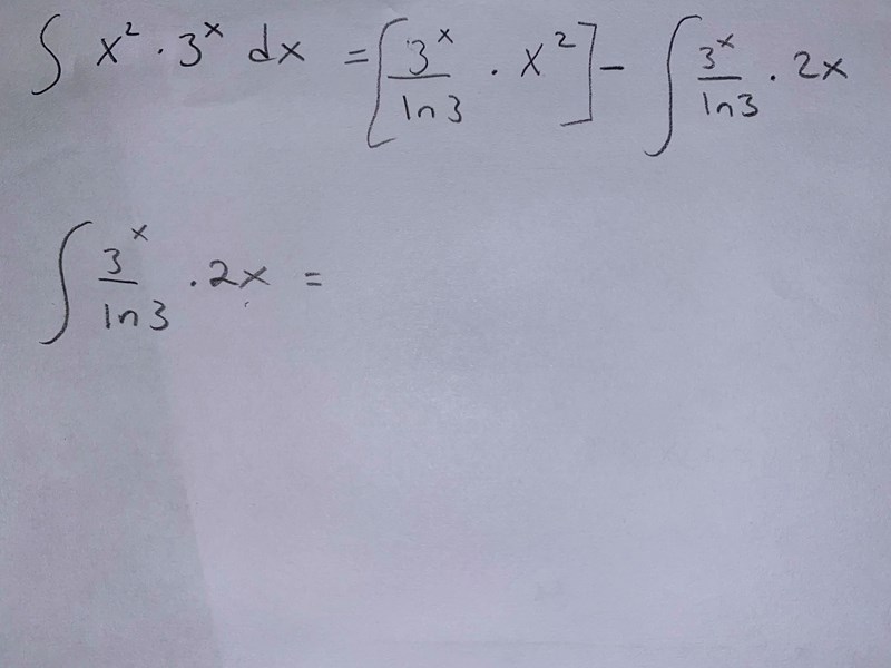 det är nu jag har fastnat vet inte riktigt hur jag ska integrera 3^x /ln3