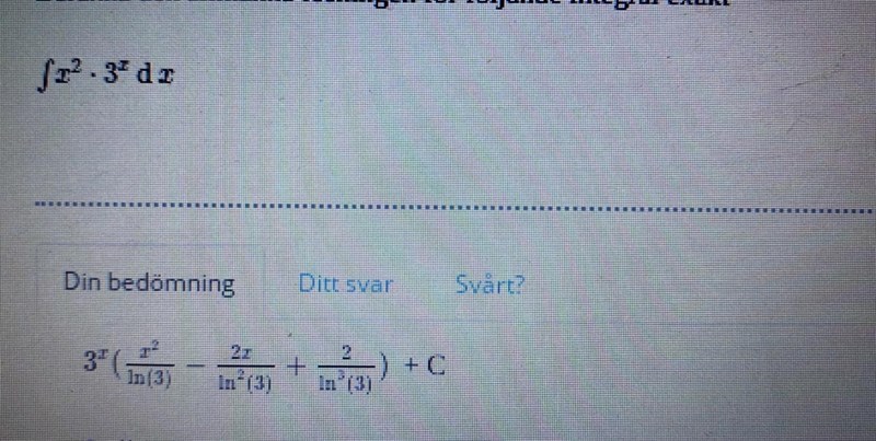 tomast80 skrev:eli321be skrev:det är nu jag har fastnat vet inte riktigt hur jag ska integrera 3^x /ln3