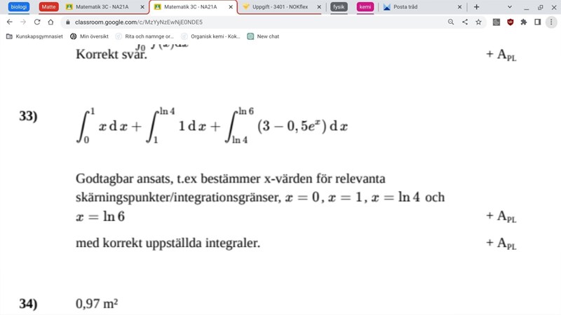 Jag behöver hjälp med följande uppgift, jag förstår hur jag ska lösa men inte varför det står i lösningen att integranden ska vara 1 på andra, jag hade tänkt att den ska vara 0,5ex -2