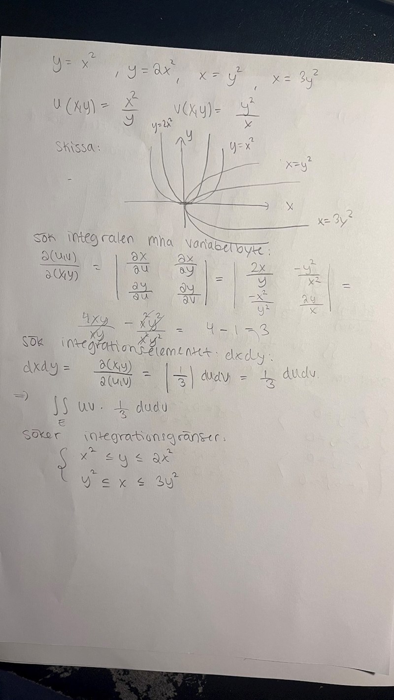 Jag antar där alla fält möts så specifikt området mellan y=2x^2 och x=3y^2