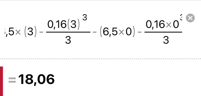 (6.5x-0.16x^3/3) mellan x=0 och x=3 . Eller?