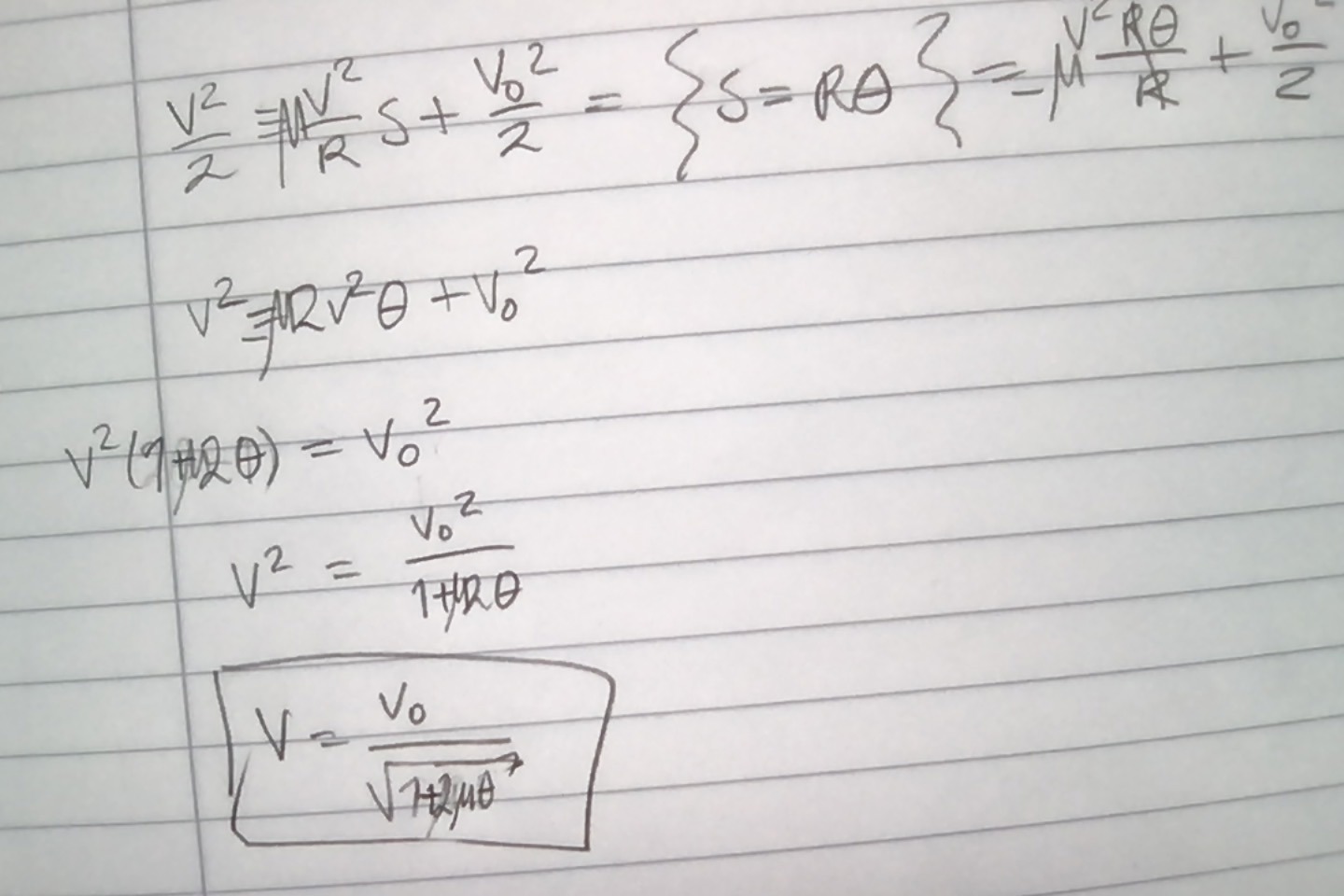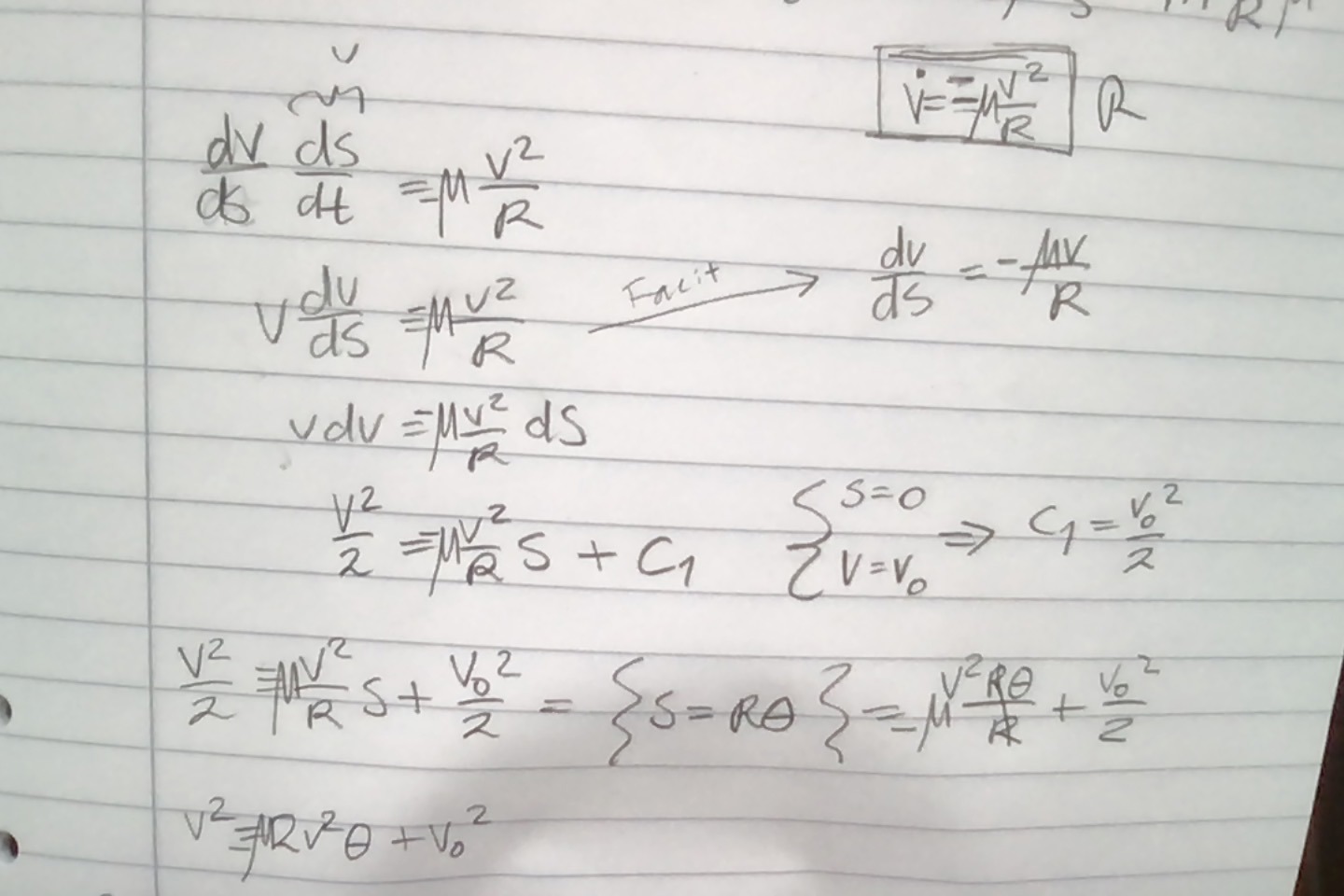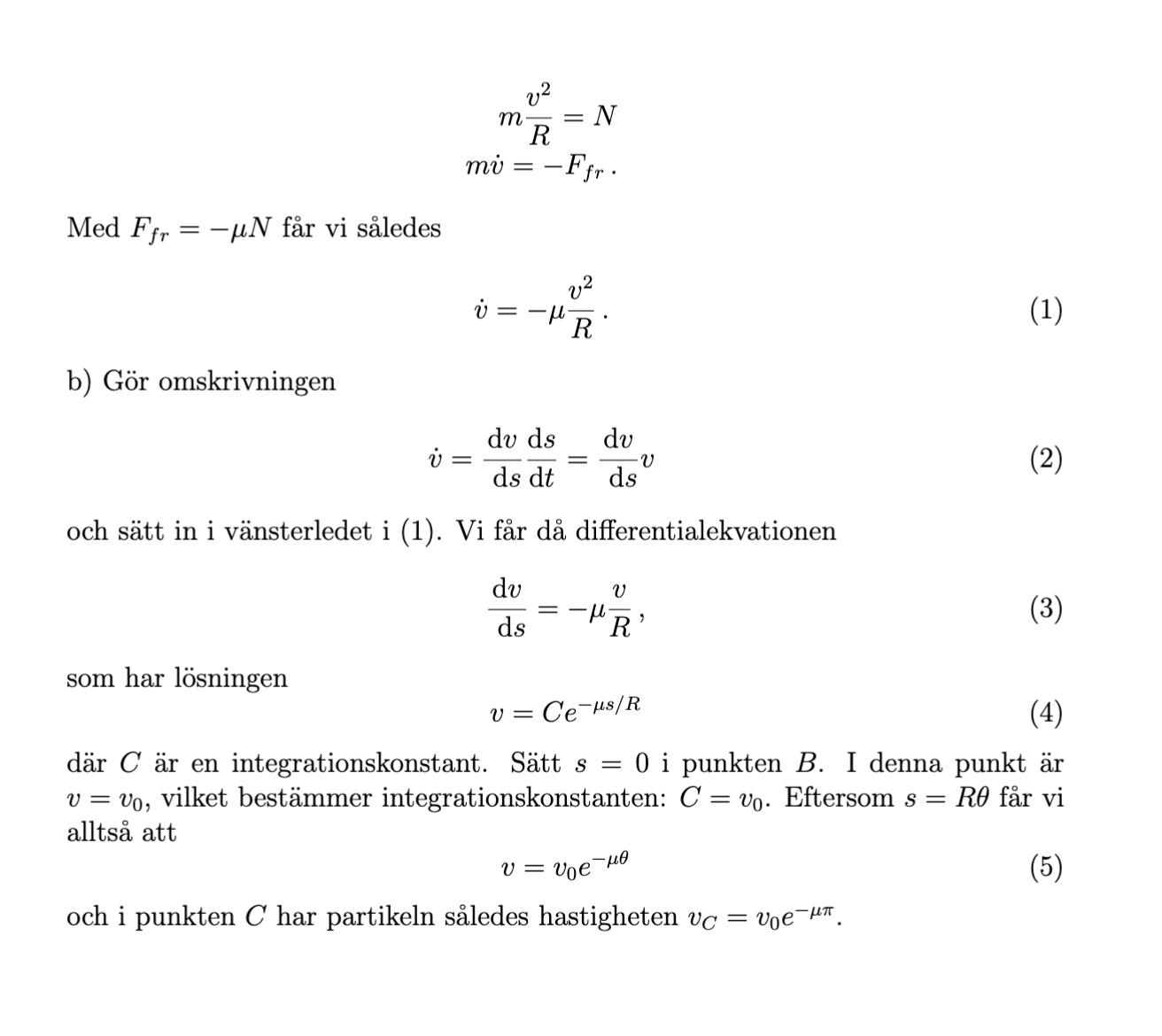 I följande uppgift har jag utfört integreringen av accelerationen genom att skriva om den och flytta om dv och ds, och sedan integrera VL map dv och HL map ds. Facit verkar dock ha skrivit om det som en diffekvation och löst den som i mattekurserna.