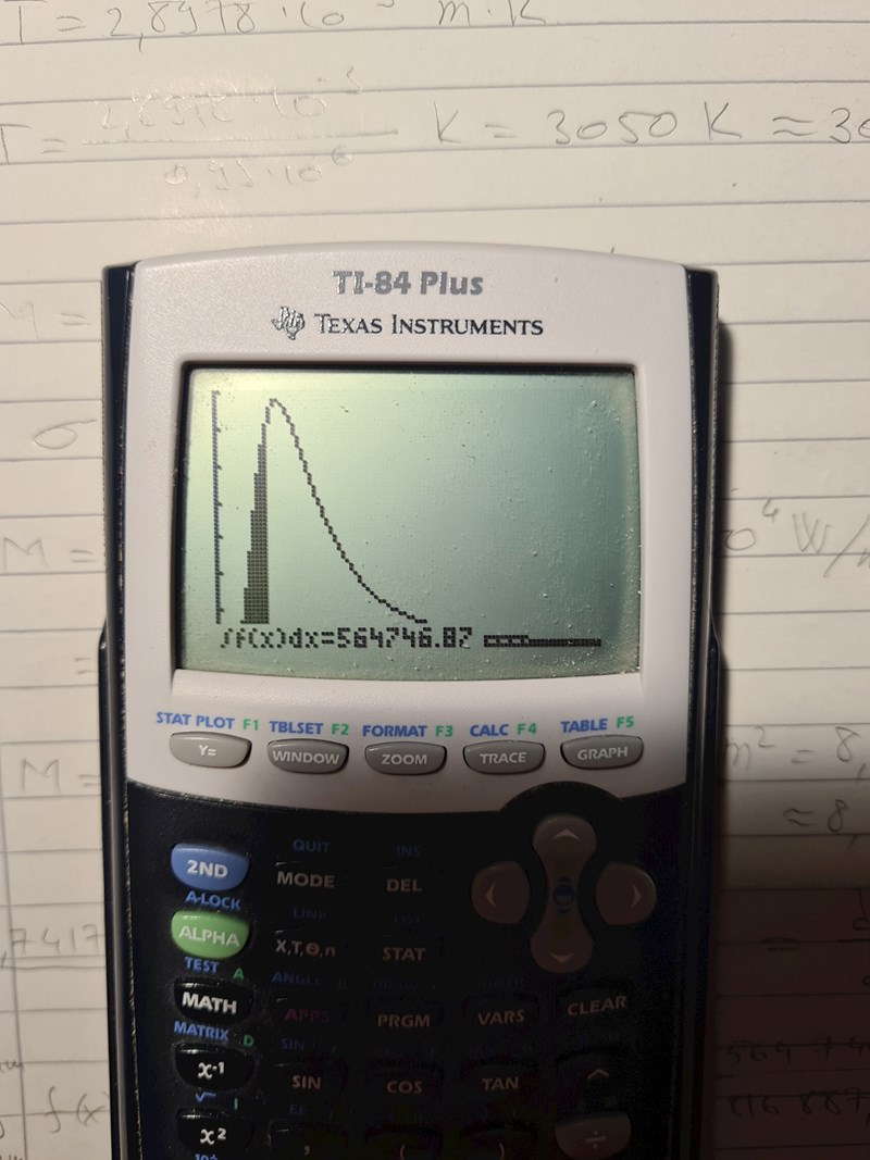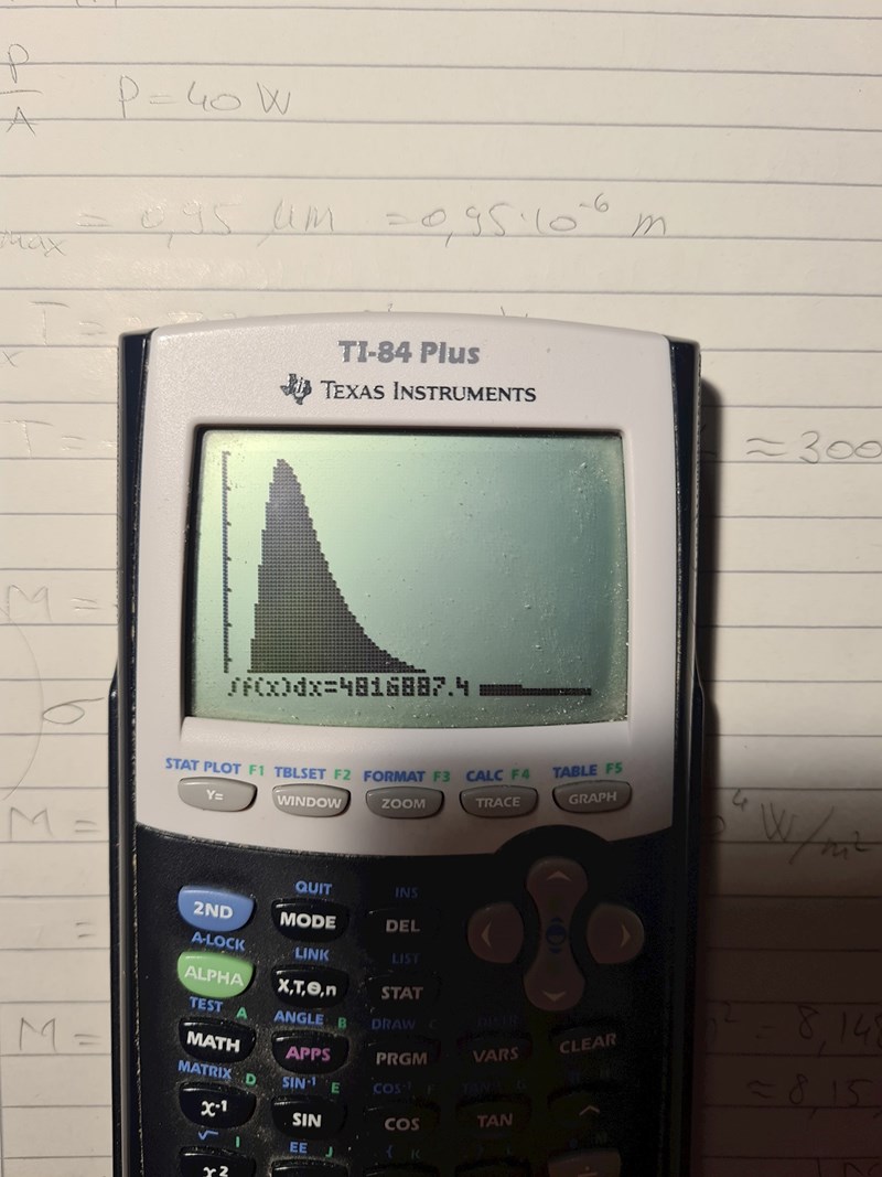 Stefan-Boltzmanns lag integrerar hela arean under kurvan. Men jag försökte integrera hela arean under kurvan grafiskt endast för att exemplet gjorde det.