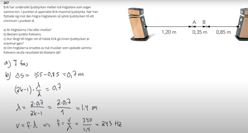 Så ifall det står att det är minimum inom punkten B ska jag utgå hela uppgiften från en destruktiv interferens trots att man ska endast räkna fram frekvensen?