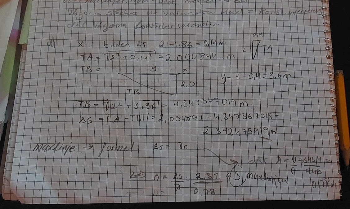 Efter en smärtsam halvtimma med denna uppgift kom jag äntligen fram till svaret. Förresten, formeln för konstruktiv interferens behövde användas här, alltså är den viktig inom vissa lösningar 😅 Tusen tack för din hjälp, Peter!