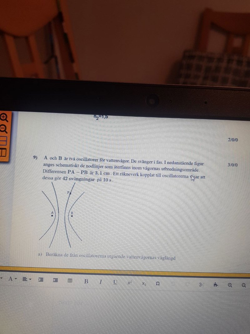 För att räkna ut våglängden behöver du inte veta frekvensen (jag tror den informationen behövs till någon av de efterföljande uppgifterna som inte finns med i fotot).